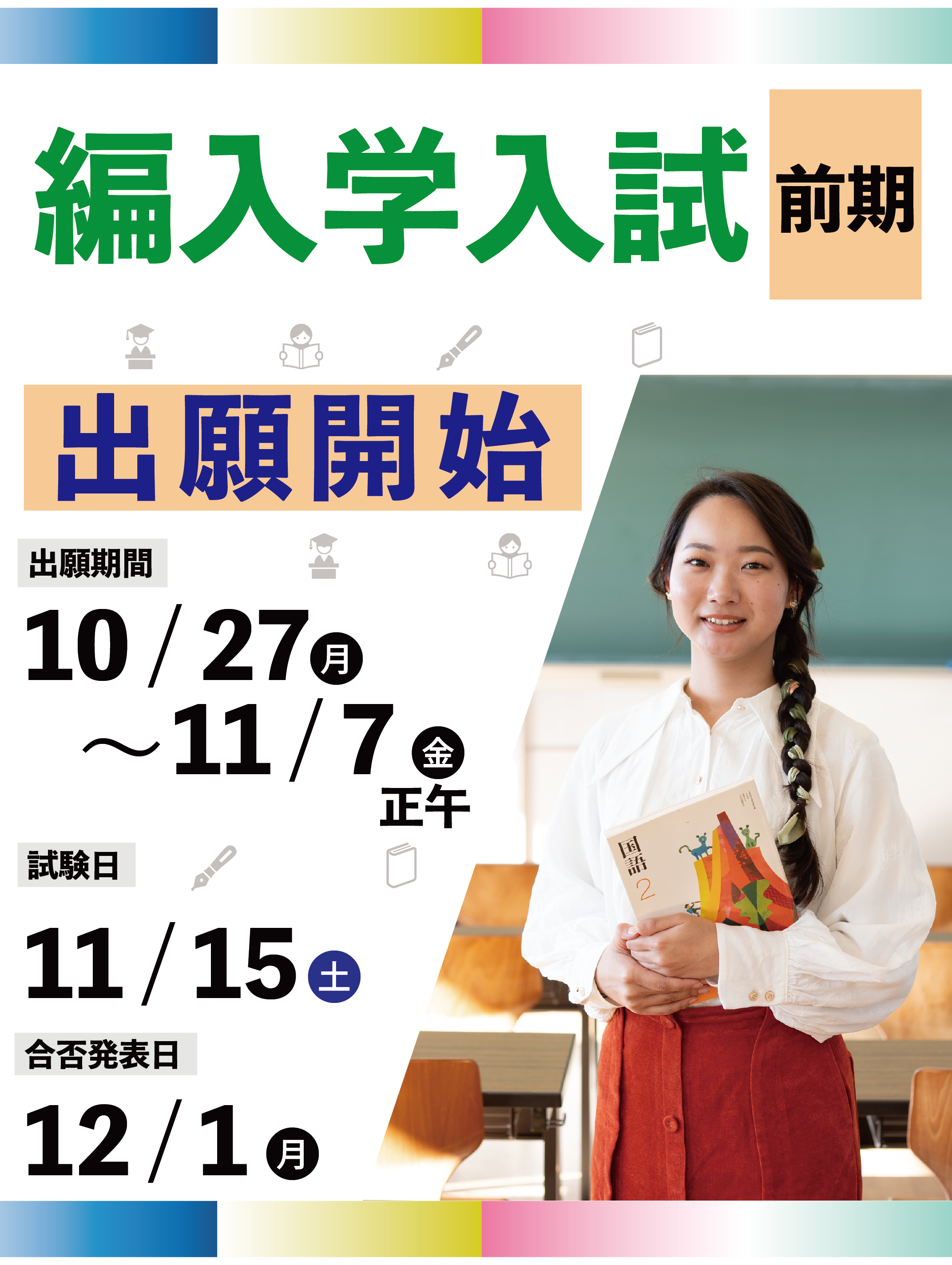 編入学試験前期 出願期間 10/27(月)~11/7(金)12:00